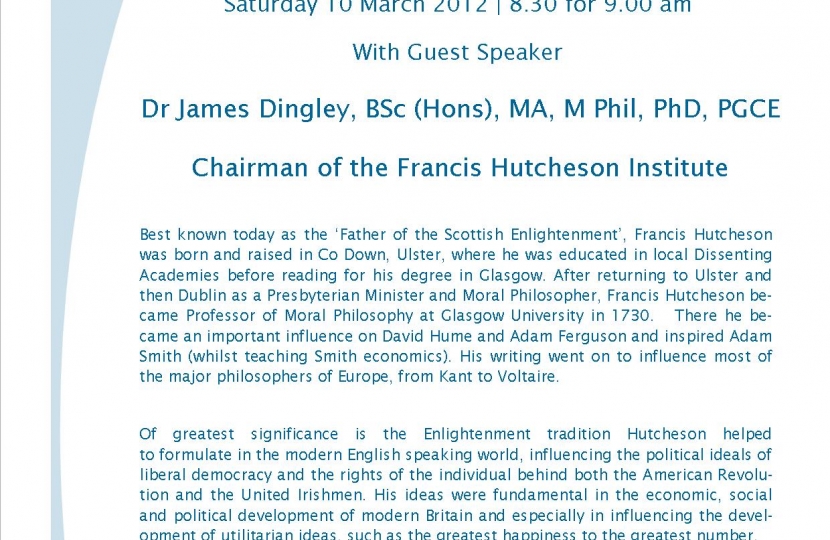 Get into the Festive Season, come and join us for a glass of mulled wine and a mince pie or two. Speaker: John McCallister MLA. To help with numbers, please signal your intention to attend to [email protected] 7.30 pm – 9.30 pm Friday 14th December 2012 in The Londonderry Room Townhall The Square, Newtownards.