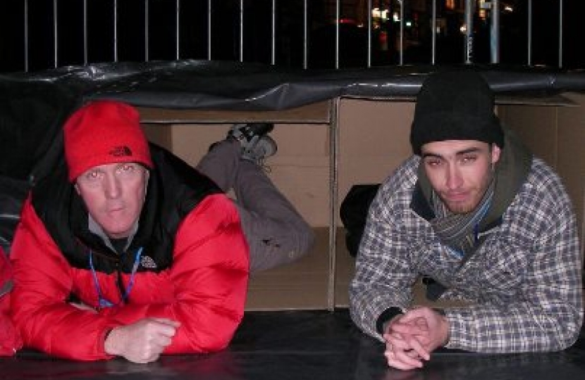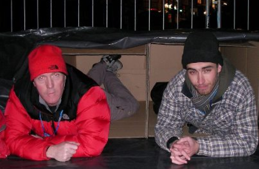Two NI Conservative activists, David Symington and Mark Brotherston, slept rough in Bangor last weekend, to increase awareness of homelessness. David, the Tory representative for Ballyholme and Groomsport, and Mark, who represents Bangor West, took part in Abaana’s ‘Charity 48’ drive, which raises funds for street children in Uganda.