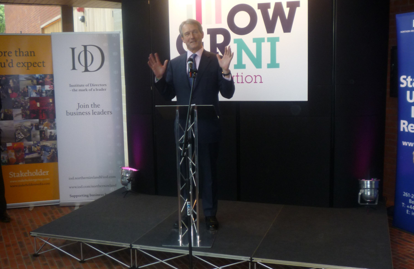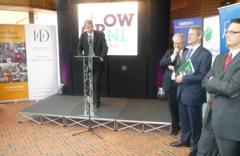 The Secretary of State, Owen Paterson MP, addressed an audience of business leaders, Northern Ireland Conservatives and other stakeholders at the launch of the Grow NI initiative at Belfast's Lyric Theatre this morning. The umbrella group spans the business community, which has formed a united front, calling for the power to set Corporation Tax to be devolved to the Northern Ireland Assembly.